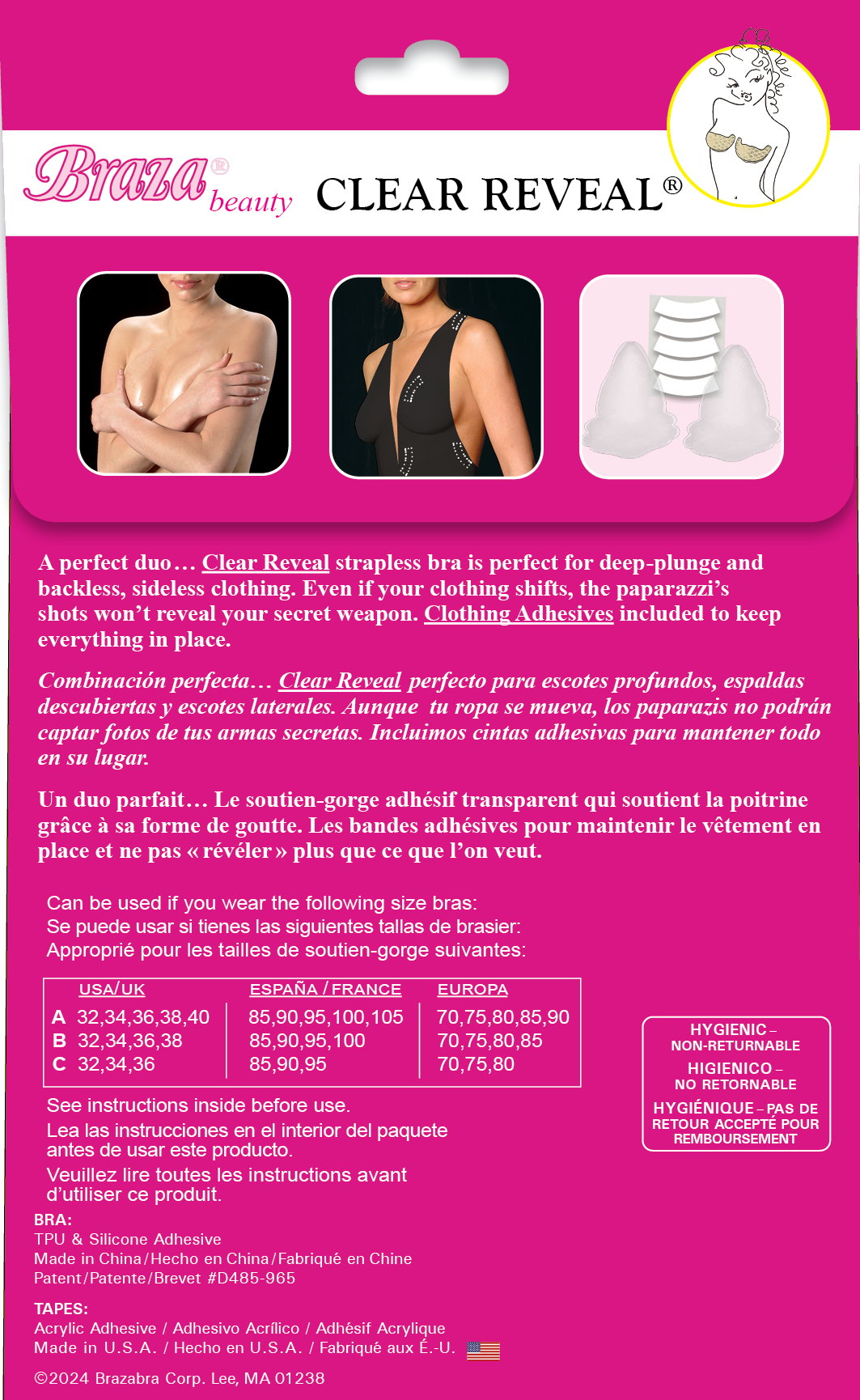 A perfect duo... Clear Reveal strapless bra is perfect for deep-plunge and backless, sideless clothing. Even if your clothing shifts, the paparazzi's shots won't reveal your secret weapon. Clothing Adhesives included to keep evertything in place.