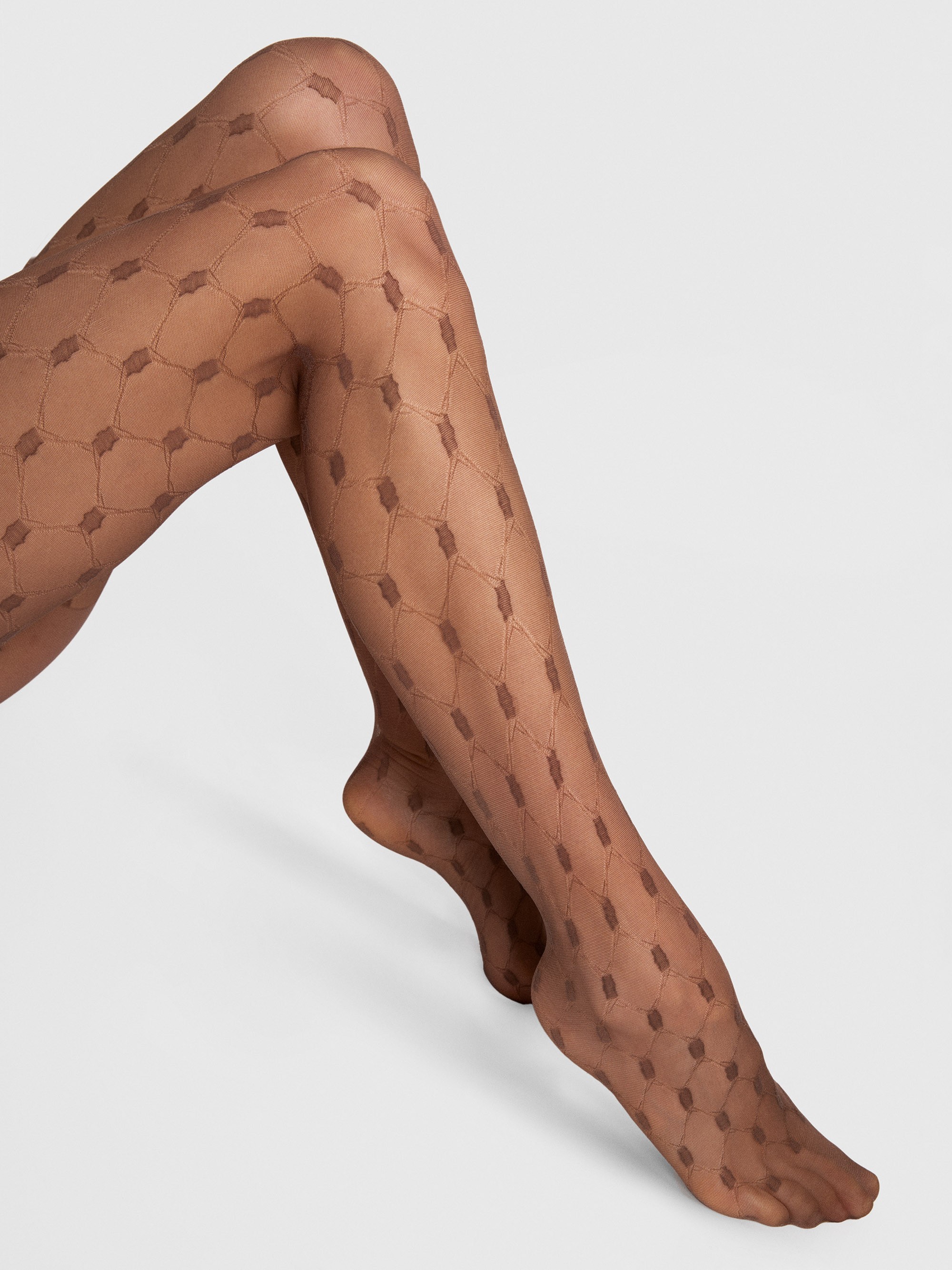 This model is a feminine interpretation of fishnet tights with a lace-inspired design. The bold yet elegant pattern adds character and sensuality to any outfit. Available in black, brown and ecru, it works beautifully in both classic and fashion-forward looks.