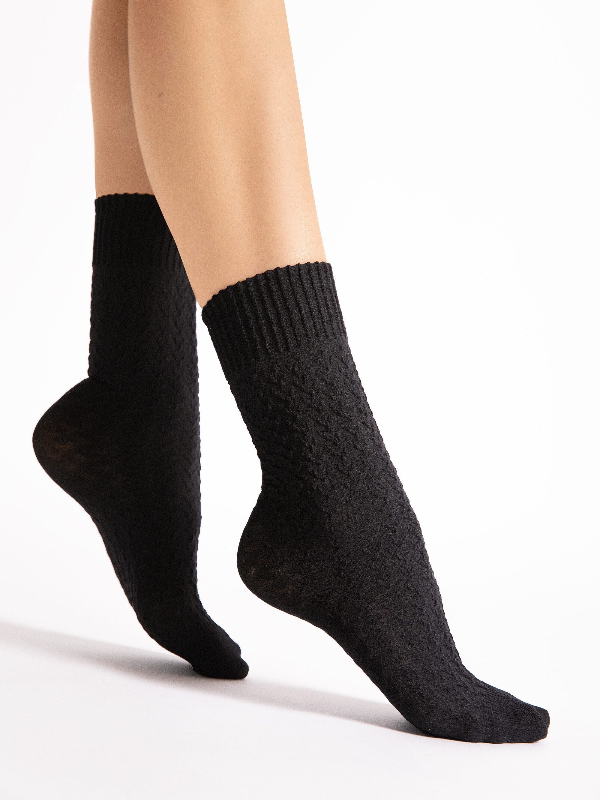 These 60 denier socks with cable pattern are not only beautifully designed but also exceptionally comfortable. They fit perfectly and provide a pleasant feeling of softness and warmth. These socks are perfect for both everyday wear and more formal occasions. They're also versatile enough to be worn with a variety of footwear. Pair them with your favorite boots, loafers, or even dress shoes to add elegance and sophistication to your outfit.