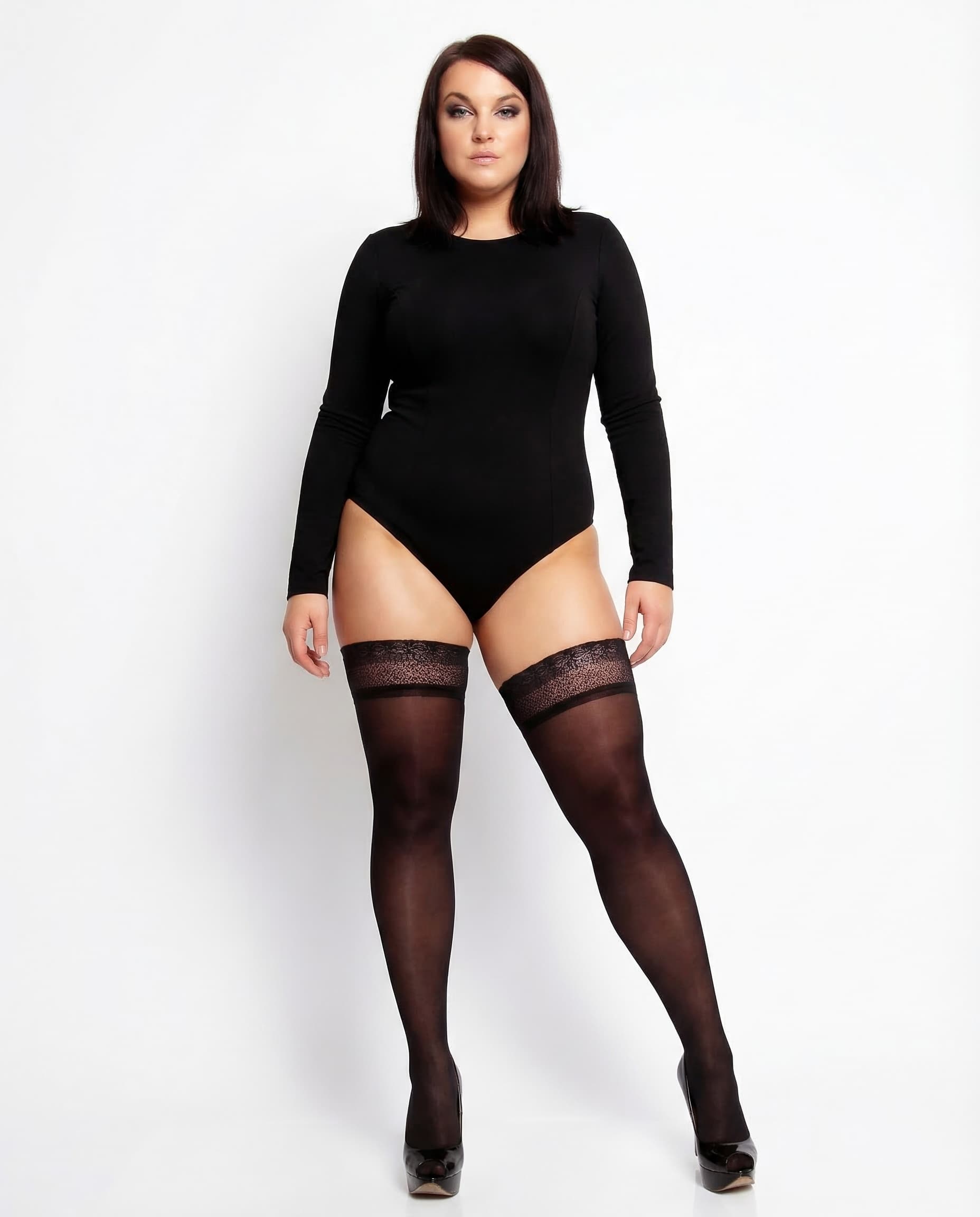 Glamory Couture - 20 denier elegant plus size hold ups with back seam and deep lace top
