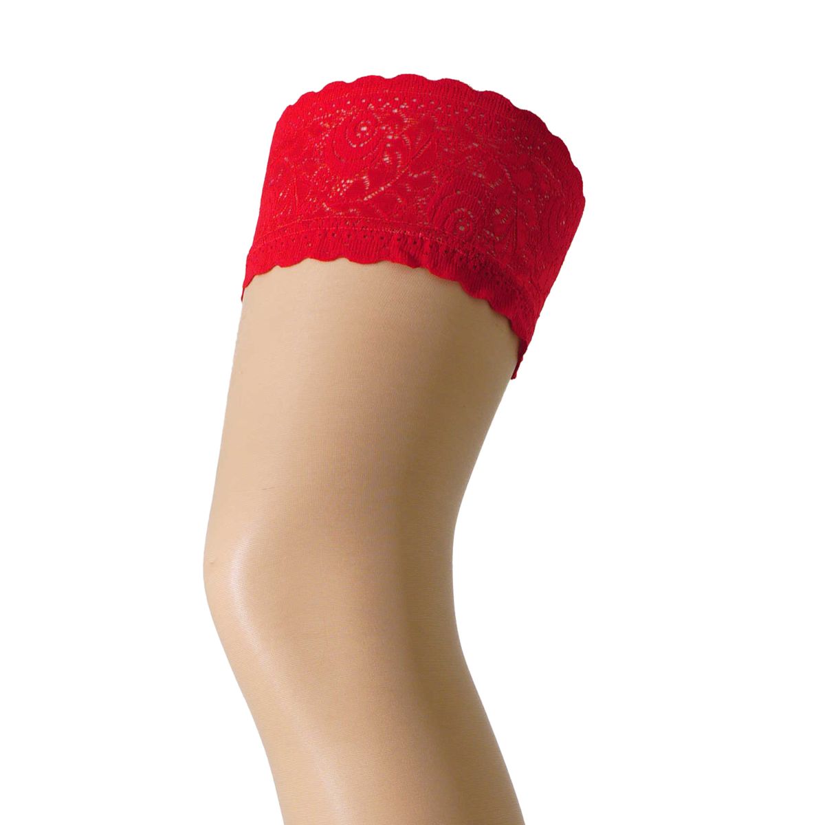 Fiore - Hold Ups with Floral Lace Top in Red Nocturne